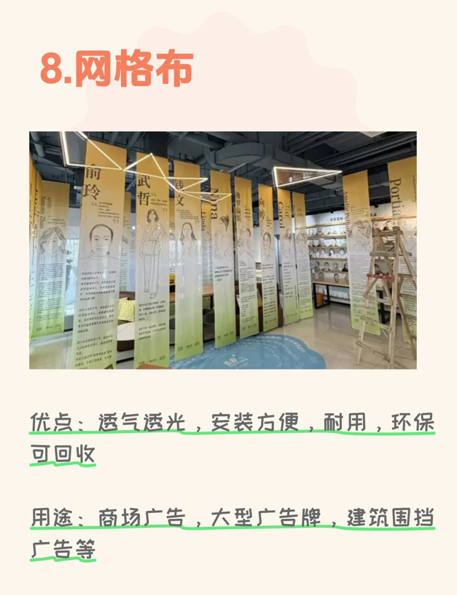 分享了10种常用的广告喷绘物料,并介绍了特性优点和用途,线下物料还是线上设计一次就看懂,轻松应对各种活动工作!