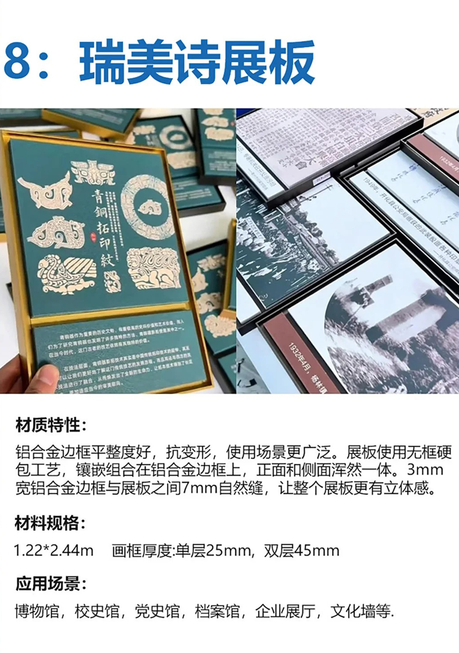 我们拥有一支兼具美学素养与实战经验的设计团队,能精准捕捉客户需求,结合品牌调性、展示场景与受众特点,打造兼具视觉冲击力与信息清晰度的定制化设计方案;同时配备标准化生产车间与专业制作团队,采用高品质板材、环保油墨及先进印刷工艺,确保每一块展板在色彩还原、质感呈现与耐用性上都达到行业高标准。