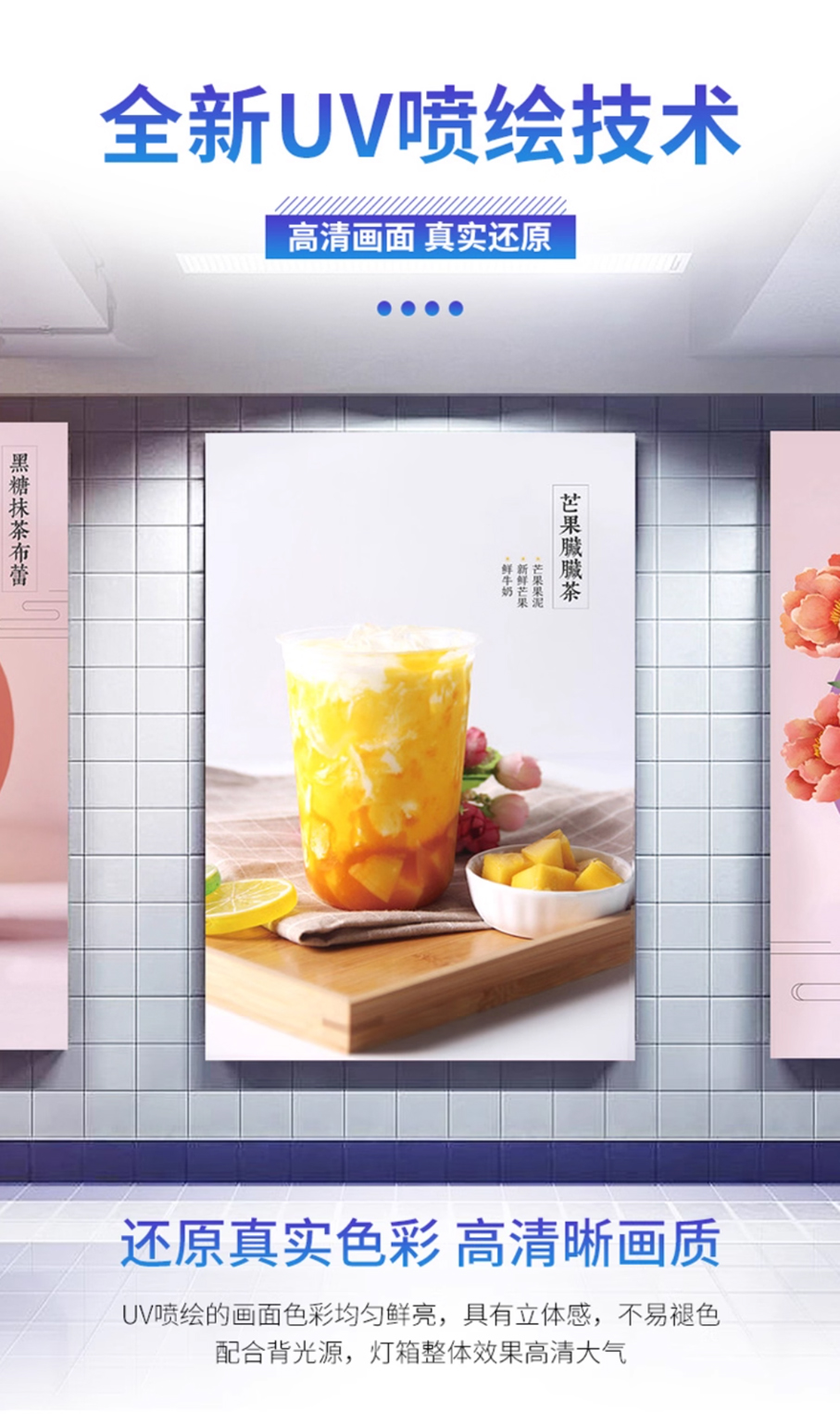 1. 品质硬实力:精选高透光软膜与耐用铝合金边框,搭配节能高亮LED光源,灯箱透光均匀无暗区,使用寿命可达50000小时以上,且通过严苛质量检测,确保长期稳定使用。