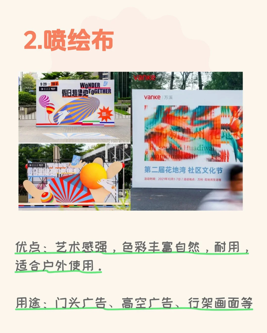分享了10种常用的广告喷绘物料,并介绍了特性优点和用途,线下物料还是线上设计一次就看懂,轻松应对各种活动工作!
