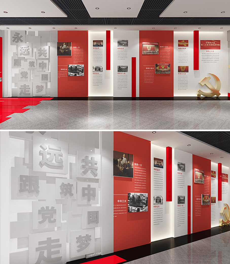 瓷砖/大理石:天然石材纹理增强高端感,适用于荣誉墙等区域